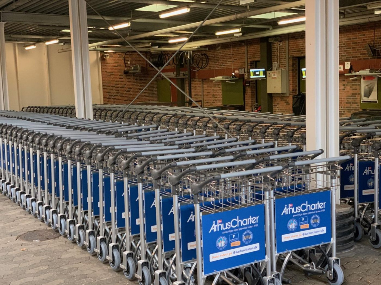 KS Gruppen A/S har netop leveret 250 stk. funklende nye og brugervenlige aluminiums bagagevogne fra vores samarbejdspartner EXPRESSO i Tyskland til Aarhus Airport (AAR). Lufthavnens gamle vogne havde kørt i 20 år og i forbindelse med at lufthavnen bliver udbygget, blev altså også de moderniseret. De nye bagagevogne vil fremover være med til at give lufthavnens passagerer den bedste oplevelse, når de fremover rejser ud og kommer hjem igen gennem lufthavnen.