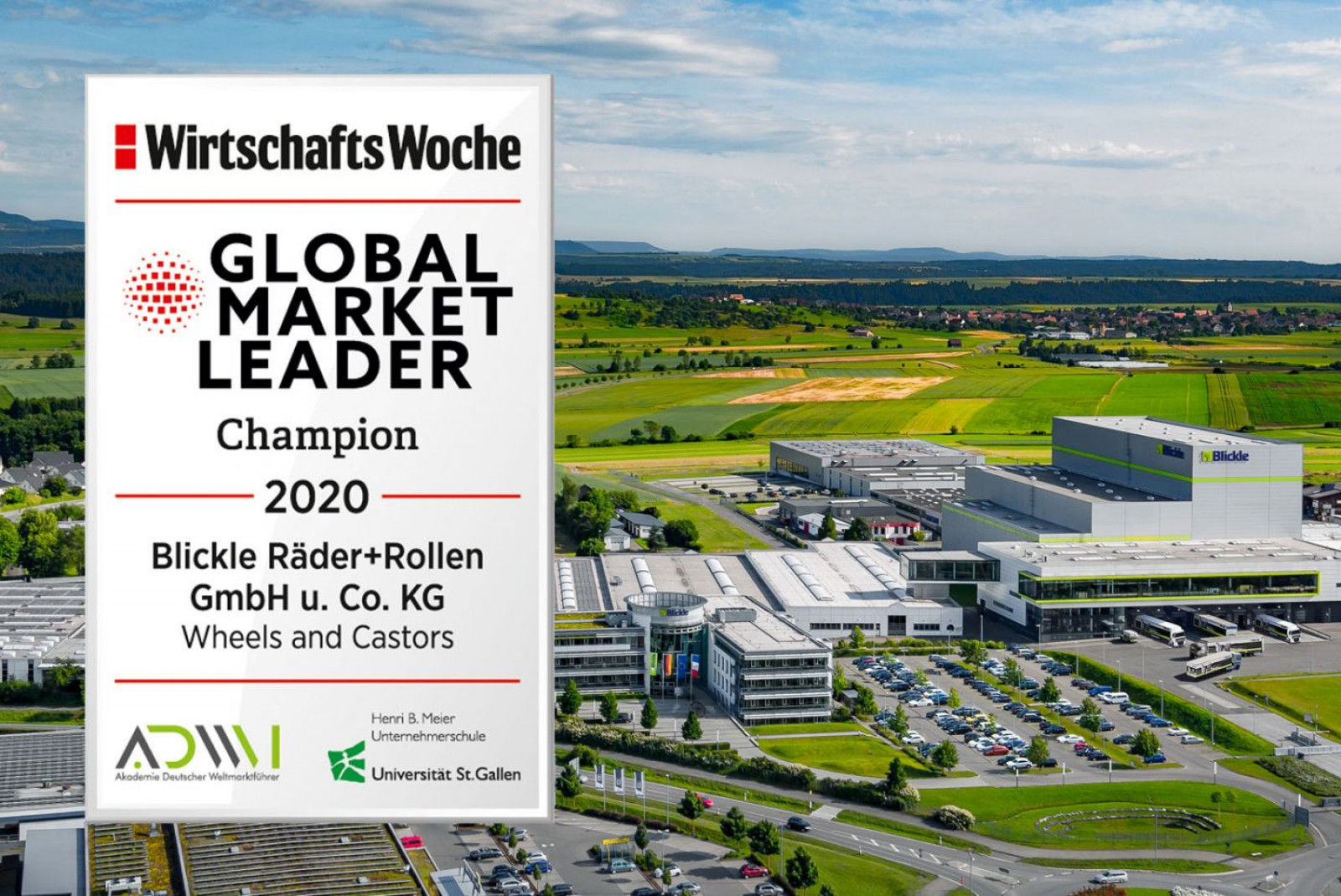 Ifølge denne undersøgelse lykkes det i alt 450 virksomheder at placere sig i toppen. Blickle er én af disse virksomheder. Udnævnt som global markedsleder indenfor transporthjul, særligt sværlasthjul og slingrehjul til gaffeltrucks. Blickle har hovedsæde i Rosenfeld i Tyskland, og har 18 salgsselskaber rundt omi Europa, Nordamerika, Asien og Australien. Derudover er Blickle repræsenteret i 120 lande.