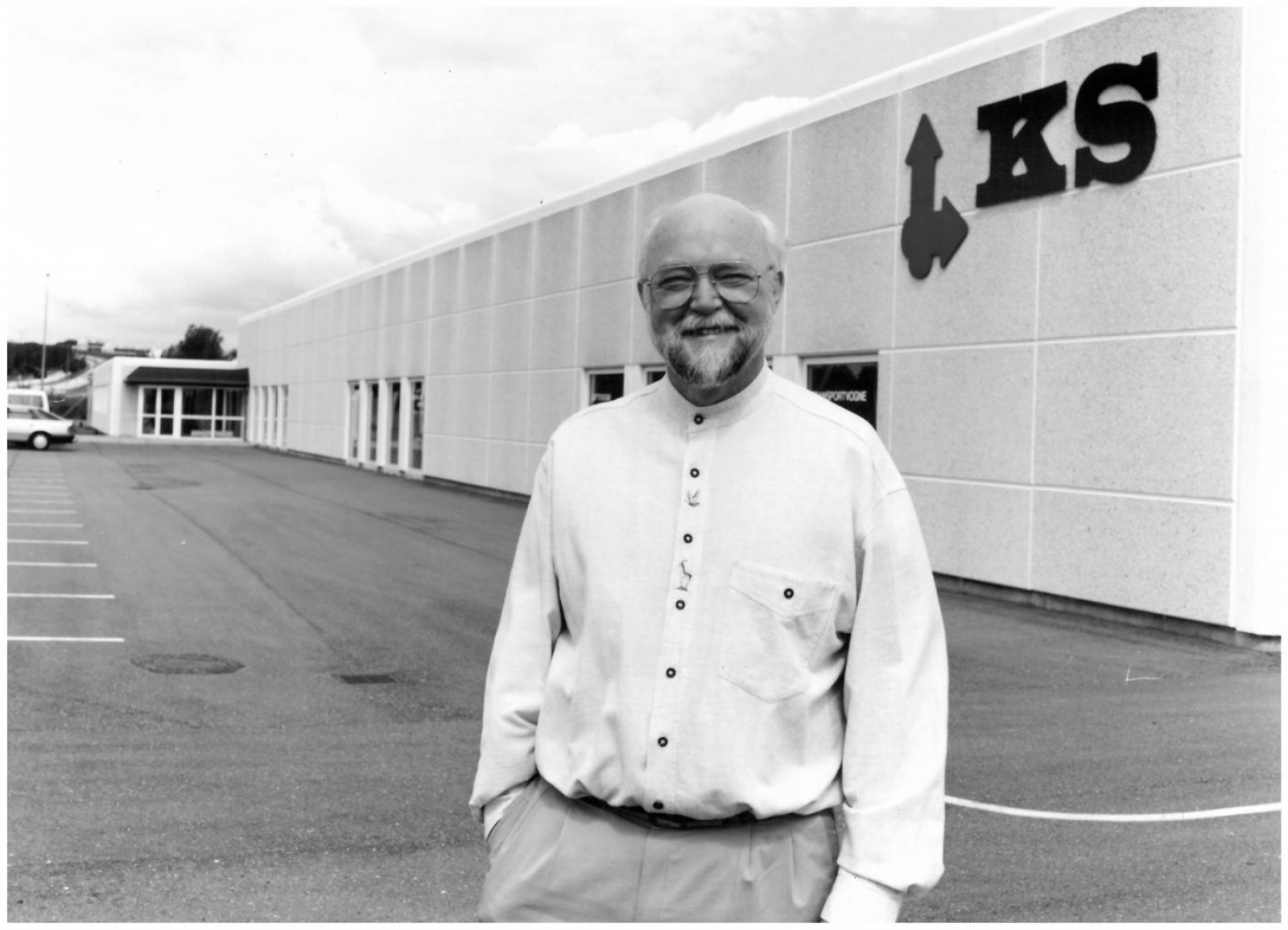 “ På billedet ses min far, Anders Svensk Jessen, foran KS Gruppens kontorer og lagerhal på Troensevej i 1989. Allerede i 1964 opkøbte han Klemm Service, hvorefter navnet KS Transportmateriel opstod. ”Ring til os på +45 98 15 15 11