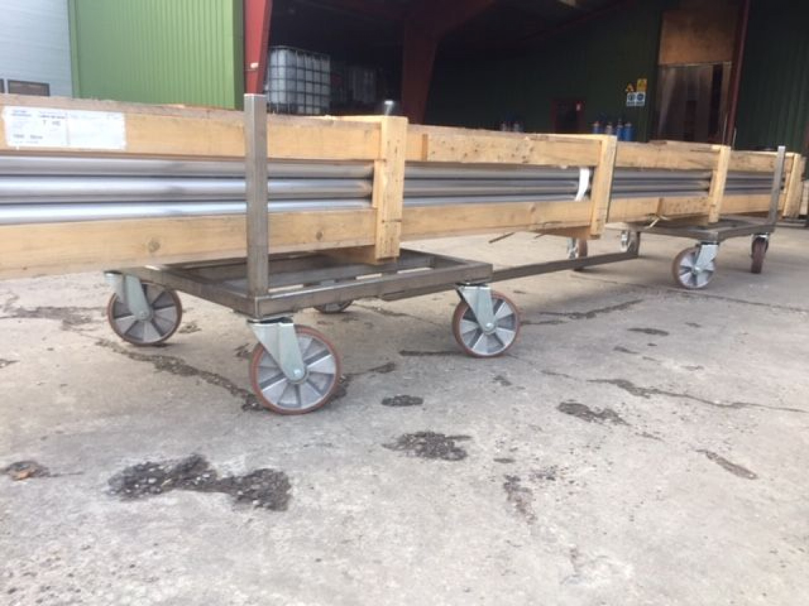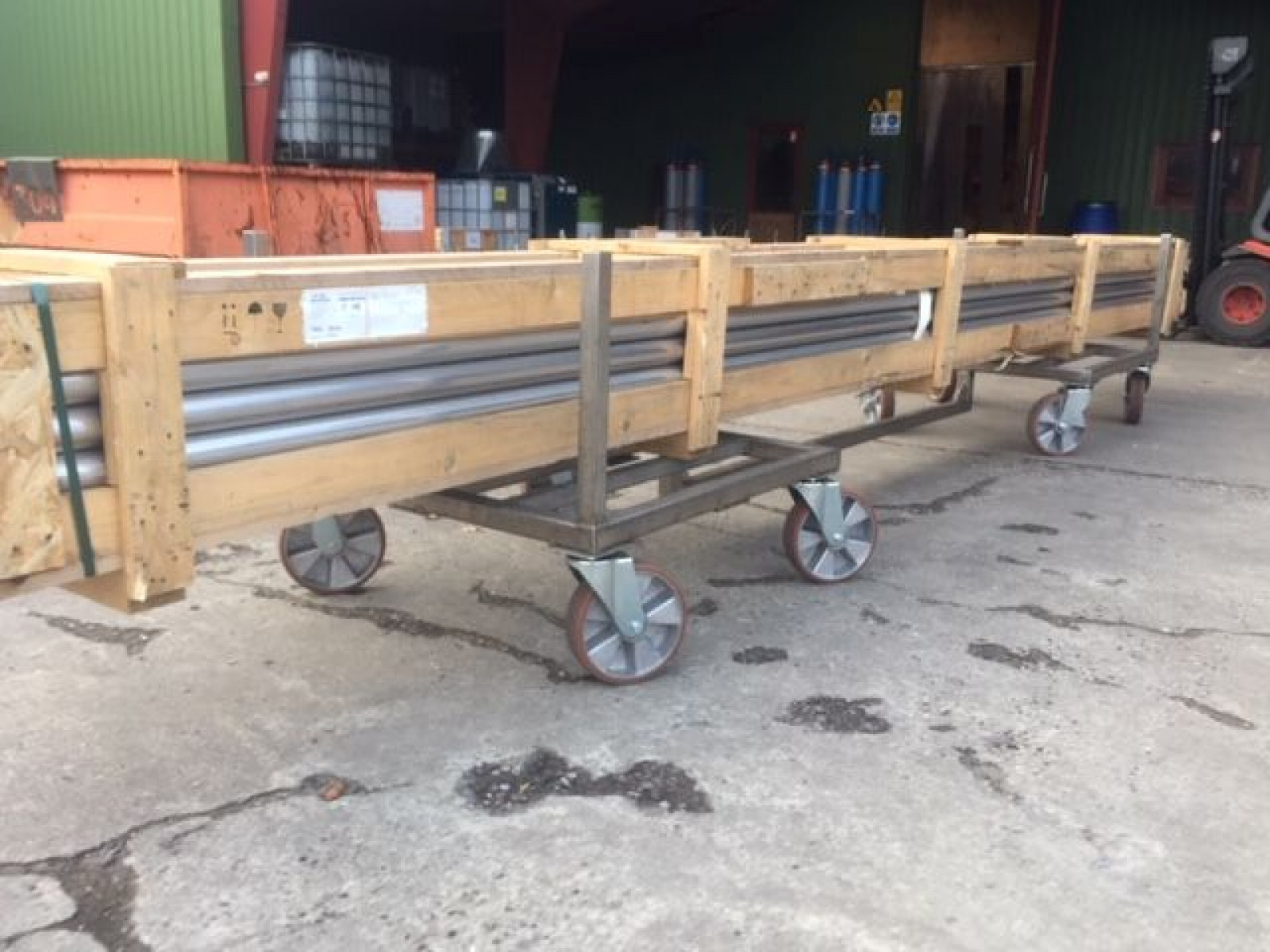 Når virksomheden får leveret rustfrie rør til produktionen, kommer de i nogle store aflange kasser, der vejer mellem 500 og 1.000 kg. Disse kasser blev hidtil transporteret ind i produktionen på nogle specialvogne med luftgummihjul.