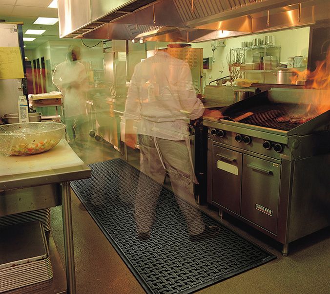 Blød og smidig arbejdsmåtte, som giver god komfort og ergonomi på hårde gulve. Det kraftige mønster gør den skridsikker, og den åbne konstruktion slipper væde igennem og dræner og ventilerer gulvet. Den er fremstillet af 100% nitrilgummi, hvilket gør den meget modstandsdygtig overfor olier, fedt og kemikalier. Gummiet er antibakterielt behandlet for at mindske tilvæksten af bakterier. Comfort Flow har en ekstra kraftig, affaset kant, som reducerer snublerisikoen.