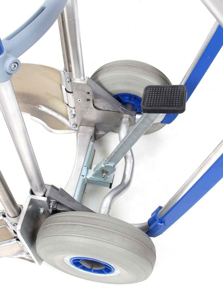 For at forbedre arbejdsstillingen er vognen udstyret med 2 vinklede støtteskinner, som gør det muligt at lægge den ned og arbejde i en ergonomisk korrekt højde. Det giver bedre komfort og reducerer belastningen ved af- og pålæsning af dæk.
