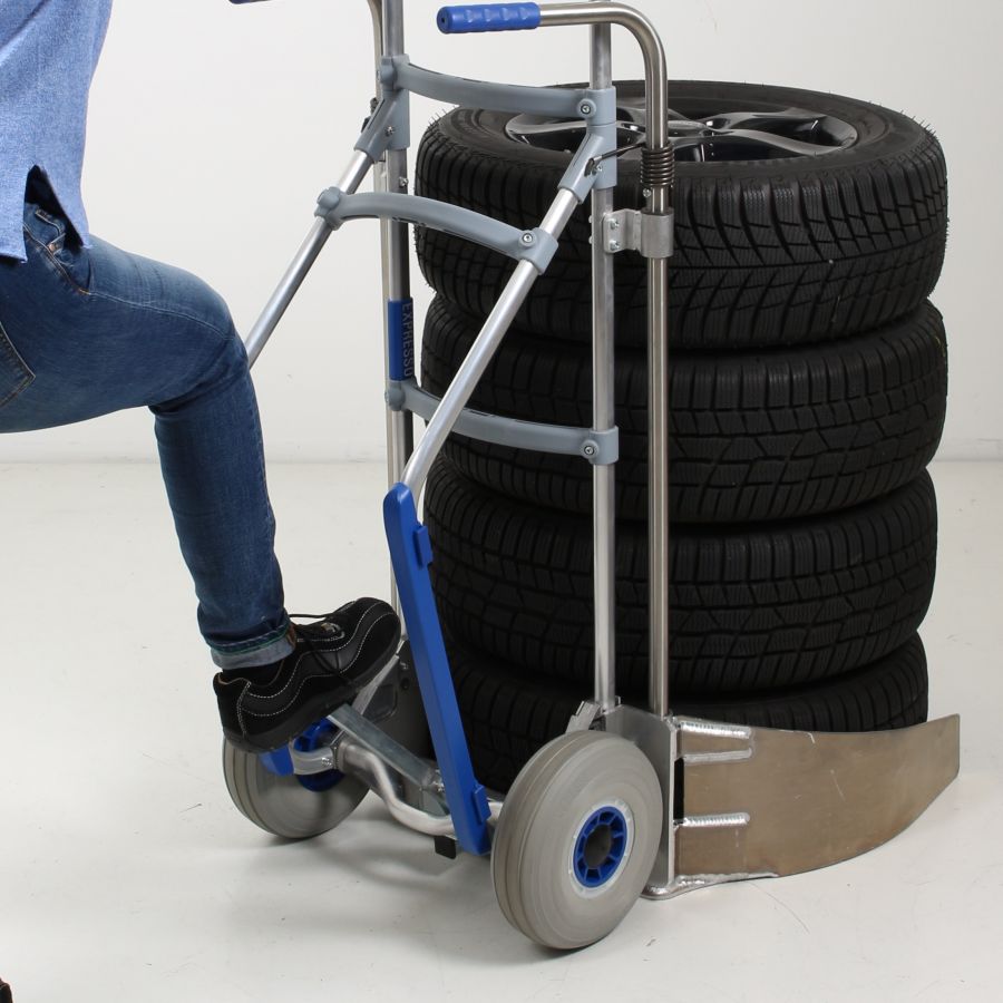 Gør arbejdet med tunge dæk både lettere og mere ergonomisk. Denne fodpedal monteres direkte på din dæksækkevogn og reducerer den fysiske belastning markant, når vognen skal tippes med tunge dækstabler.