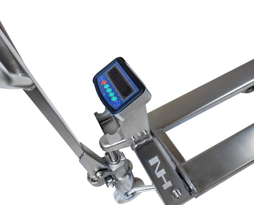 Rustfri palleløfter med indbygget vægtsystem, så der spares tid, da godset kan vejes på stedet. LCD display med 25 mm cifre. Tolerance på +/- 2 kg. Visning af netto og bruttovægt i hele kg. Kan nulstilles med vægt og genveje ny vægt. Ergonomisk og betjeningsvenligt håndtag, der skåner brugeren i en travl hverdag.
